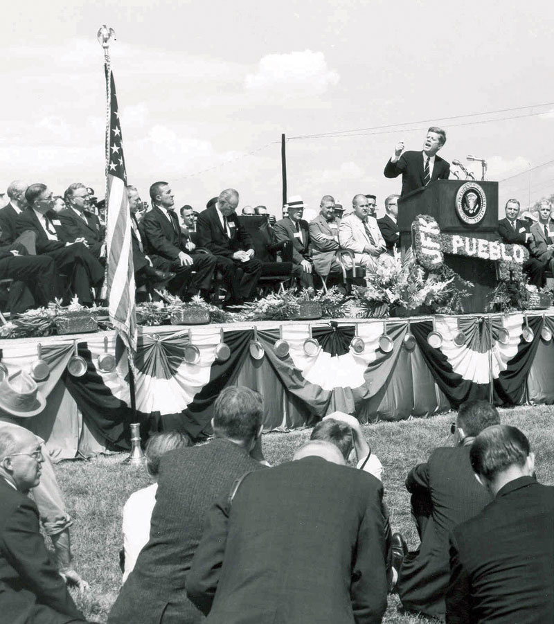 Speaking at the Dedication of the Fryingpan-Arkansas Dam project in Pueblo, Colorado, 1962 Credit: JFK Presidential Library and Museum |