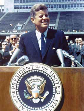 “I stand tonight facing west on what was once the last frontier. From the lands that stretch three thousand miles behind me, the pioneers of old gave up their safety, their comfort and sometimes their lives to build a new world here in the West. They were not the captives of their own doubts, the prisoners of their own price tags. Their motto was not ‘every man for himself’—but ‘all for the common cause.’ … We stand today on the edge of a New Frontier—a frontier of unknown opportunities and perils—a frontier of unfulfilled hopes and threats... Beyond that frontier are the uncharted areas of science and space, unsolved problems of peace and war, unconquered pockets of ignorance and prejudice, unanswered questions of poverty and surplus... I am asking each of you to be pioneers on that New Frontier.”
