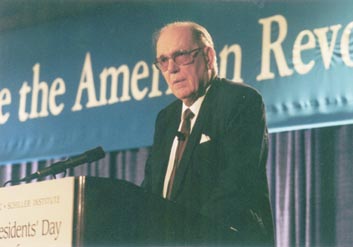 And it is a problem. Today, what is happening to the world at large, the destruction of civilization, the introduction of this mass universal fascist movement, today, is of the same root as Francisco Franco, the Carlists of the 1920s and 1930s, and earlierthis is the same thing as Nazism and Fascismthe same crowd. This is the H. Smith Ricardson Foundation; this is the American Enterprise Institute; this is the Mont Pelerin Society; this is the Heritage Foundation; this is the Olin Foundation, the Olin Institute; these institutions which we've identified, in this paper which is out there at the standswe've identified this stuff. These are the enemy of civilization; they're the enemy of mankind. They represent everything which is a repudiation of Christianity, and those who criticize my views on this should study the matter more carefully, because I'm sure they would not like to be in bed with fascists, which, implicitly, by supporting these guys, they are.