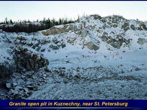 And in the same way, we had changes in the Russian territory. We have a series of maps, starting before 16th Century: Using different points to show different deposits that were developed in those times. Kuznechny, shown in photo, is one of the ancient open pits, near St. Petersburg. Then there was an expansion, and the expansion went in different ways. First of all, the government of Russia was interested in developing new territories beyond the Urals. I know people living now in Krasnoyarsk, whose family walked from the European part to the East, and they got land for free; they developed the land, and as much land as they could develop, they could have.