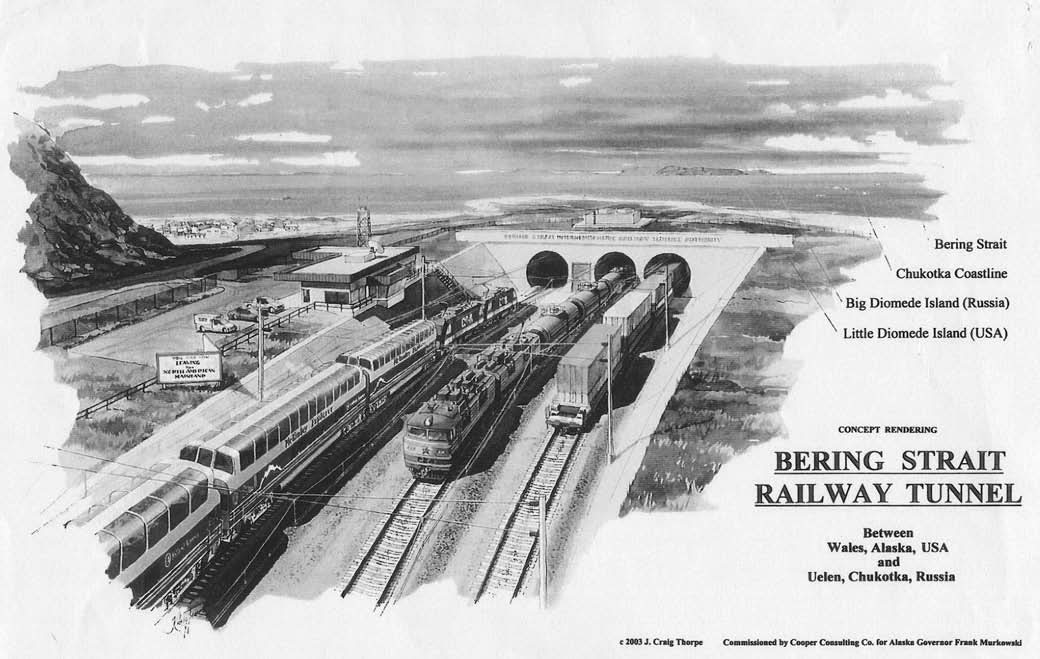 The completion of the Port MacKenzie port project and the resulting large container traffic volume would virtually guarantee an economically viable Alaska-Canada railway connector and ultimately lead to the Bering Strait tunnel. The completion of the proposed Bering Strait railroad tunnel between Alaska and Chukotka would dramatically increase the expected freight traffic levels all along the Alaska-Canada rail connector and on other rail lines as well. As a result, there would be a need to double-track all connecting main railroad lines on both continents once the Bering Strait tunnel is completed, plus to have a triple-track route between Whitehorse, Yukon Territory in Canada, and Egvekinot, Chukotka in Russia. Also, the proposed Bering Strait railroad tunnel will need to be built with three tubes instead of two, because of the very large freight (and passenger) traffic volumes to be expected in the future between North America, Europe, and Asia, as economic growth and integration accelerate, including coal traffic to China and oil traffic to the United States from Russia, Canada, and Alaska.