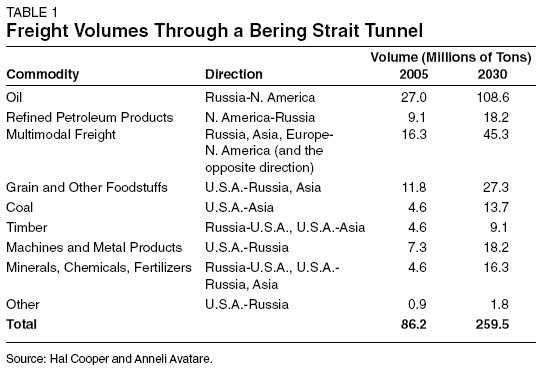 Freight volumes through the tunnel, by commodity, were estimated in a study by the U.S. engineer Hal Cooper and his colleague, Anneli Avatare (Table 1).