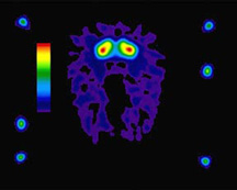 ![]() DOE Photo This PET scan shows the chemical uptake in a monkeys brain, to test the effectiveness of a Parkinsons disease treatment. The research is being carried out by the Lawrence Berkeley National Laboratory in collaboration with Somatix Therapy Corporation. By restoring levels of important brain chemicals in animals, the hope is to develop a similar treatment for human Parkinsons patients. |