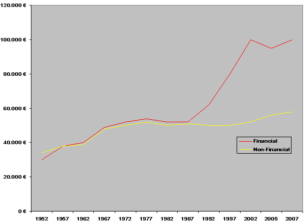 | Figure 1 Financial Sector vs. Non-Financial Sector Yearly Compensation ![]() |