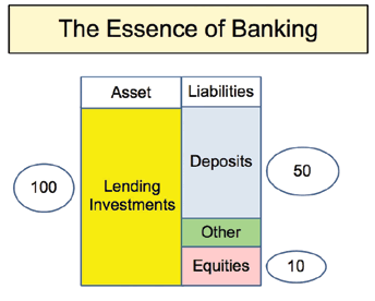 Let me elaborate why. As you know, a bank can operate as long as it maintains 10% of its total assets as equity. The essence of the banking business is this creation of confidence. Take an example whereby a bank has total assets of 100 million. It does not need to keep 100 million available for payment, because, as long as confidence in the system is sustained, depositors would not demand their deposits back in an instant. The difference between the 100 million and the requirement of 10 million can be used as the source of lending, in addition to the equity held by the bank.
