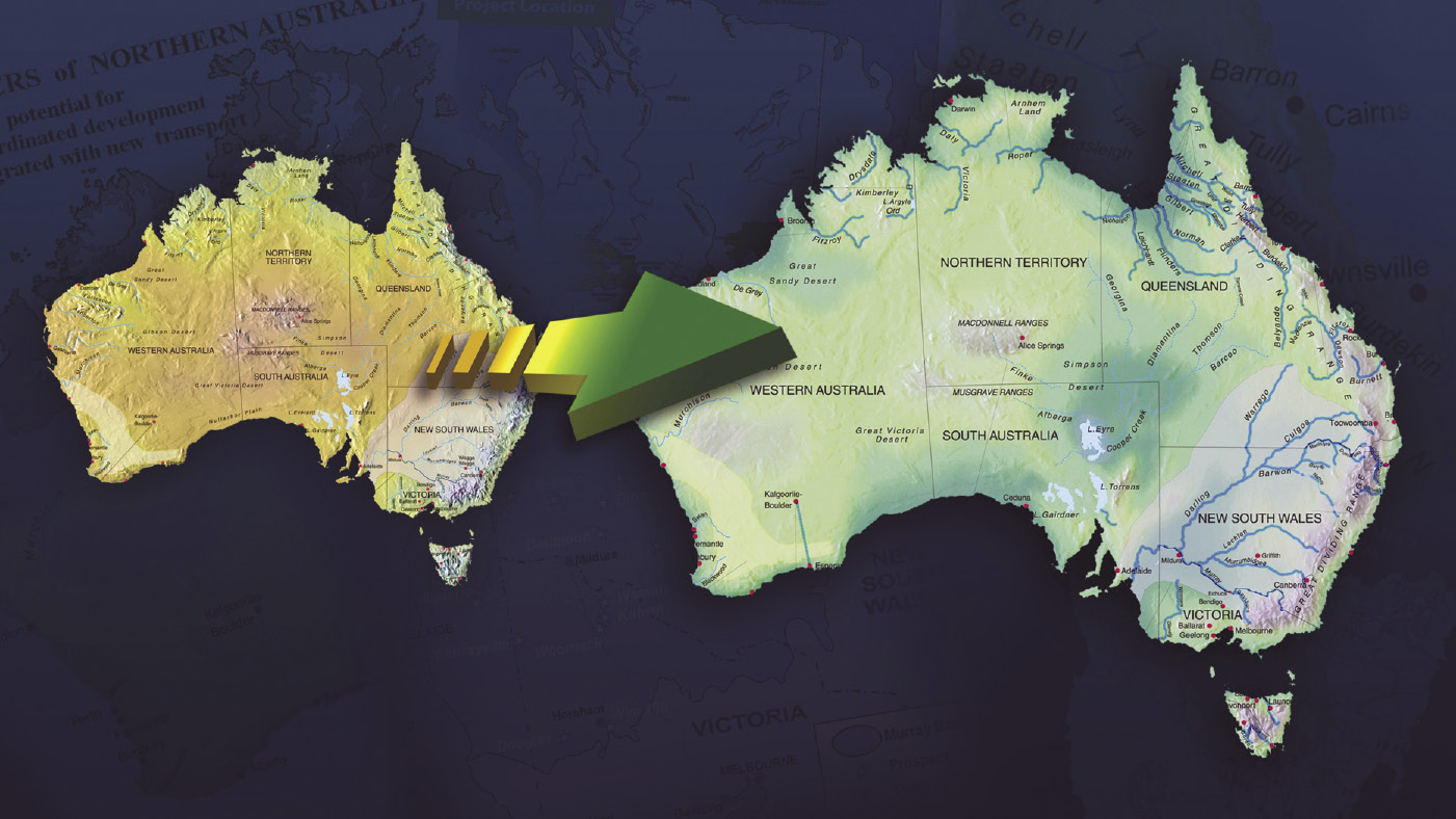 The project will reach from the far northeast of Australia, down across the continent to Lake Eyre in south-central Australia—a kind of mirror image of what NAWAPA will do in North America.