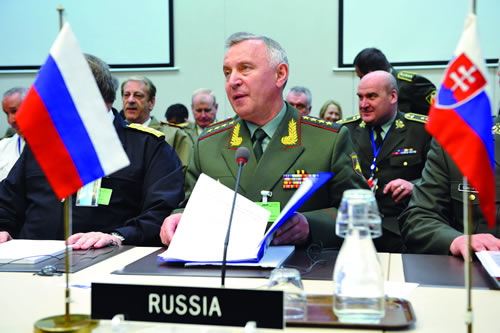 Russian Chief of the General Staff Nikolai Makarov warned of nuclear war as result of the NATO anti-missile deployments near Russia’s borders. Here he is shown at a meeting with NATO officials in 2010. |