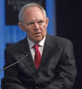 German Finance Minister Wolfgang Schäuble is a “proconsul of the imperial system,” charges Zepp-LaRouche. Here he is addressing the Davos World. |