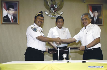 China’s Foreign Minister Wang Yi said over 30 countries have signed agreements with China to build the Belt and Road. Although it “is China’s idea,” he said, “its opportunities belong to the world.” Here a signing ceremony for an Indonesia-China joint venture for high-speed rail from Jakarta to Bandung. From left to right: Director General of Railways of Indonesia’s Transportation Ministry, Herman Dwiatmoki, Indonesian Minister of Transportation Ignasius Jonan, and Hanggoro Budi Wiryawan, president director of KCIC, the joint venture. |