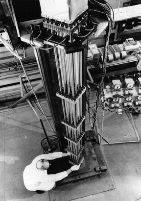 The Manhattan Project devised this method of gaseous diffusion with incredible speed and secrecy. It was not finished in time to produce all the uranium for the uranium bomb dropped on Japan, but it produced most of the enriched uranium for the civilian and military programs in subsequent years. Although a successful method, it required a tremendous amount of energy and a huge physical structure to house the cascades of separate membranes. Four power plants were built in Oak Ridge, Tenn., to power the process, producing as much electric power as the consumption of the entire Soviet Union in 1939! Almost all the power consumed in the diffusion process is used to circulate and compress the uranium gas. Technological pessimists take note: At the time the gaseous diffusion plant was being built, scientists had not yet figured out how to make a membrane to be used in the processbut they did it in time to make it work! The centrifuge system, used in Europe and Japan, is 10 times as energy efficient. The strong centrifugal field of a rotating cylinder sends the heavier isotope in uranium hexafluoride to the outside of the cylinder, where it can be drawn off, while the U-235 diffuses to the inside of the cylinder. Because of the limitations of size of the centrifuge, many thousands of identical centrifuges, connected in a series called a cascade, are necessary to produce the required amounts of enriched uranium. A centrifuge plant requires only about 4% of the power needed for a gaseous diffusion plant, and less water is needed for cooling. Other methods of enrichment are possibleelectromagnetic separation, laser isotope separation, and biological methods. Fabrication Into Fuel Rods