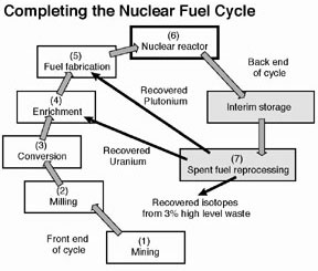 Scott W. Heaberlin, A Case for Nuclear-Generated Electricity ... or why I think nuclear power is cool and why it is important that you think so too (Columbus, Oh.: Battelle Press, 2004). Alan Waltar, Radiation and Modern Life (Amherst, N.Y.: Prometheus Books, 2004). See also: http://www.world-nuclear.org/education/education.htm on the fuel cycle. 1. Reprinted from 21st Century Science & Technology, Winter 2005-06. See www.21stcenturysciencetech.com. 2. The energy density of nuclear can be seen by comparing fission fuel to other sources. In terms of volume of fuel necessary to do the same amount of work, a tiny pellet (1.86 grams) of uranium fuel equals 1,260 gallons of oil, or 6.15 tons of coal, or 23.5 tons of dry wood. This means that nuclear is 2.2 million times more energy dense than oil, and 3 million times more energy dense than coal. Thermonuclear fusion will be even orders of magnitude more energy dense. These calculations were based on the work of Dr. Robert J. Moon in 1985. 3. The U.S. Congress in the 2005 Energy Act included $50 million for research on new reprocessing methods. 4. The Reprocessing of Nuclear Fuels by William P. Bebbington, Scientific American, December 1976, pp. 30-41. 5. Commenting on President Carters 1977 policy to shut down reprocessing and the Clinch River Breeder Reactor, Bernard Goldschmidt, a preeminent French nuclear scientist, who had studied with Marie Curie, wrote: By this extraordinary and unique act of self-mutiliation, an already declining American industry was to become paralyzed in two key sectors of future development, fuel reprocessing and breeder reactors, precisely the sectors in which the United States was already between 5 and 10 years behind the Soviet Union and Western Europe, in particular, France.... What is the Schiller Institute? How to Rebuild the World Economy LaRouches New Bretton Woods Monetary System Maps of Great Infrastructure Development Projects Around the World Several Recent Lyndon LaRouche Economic Articles: