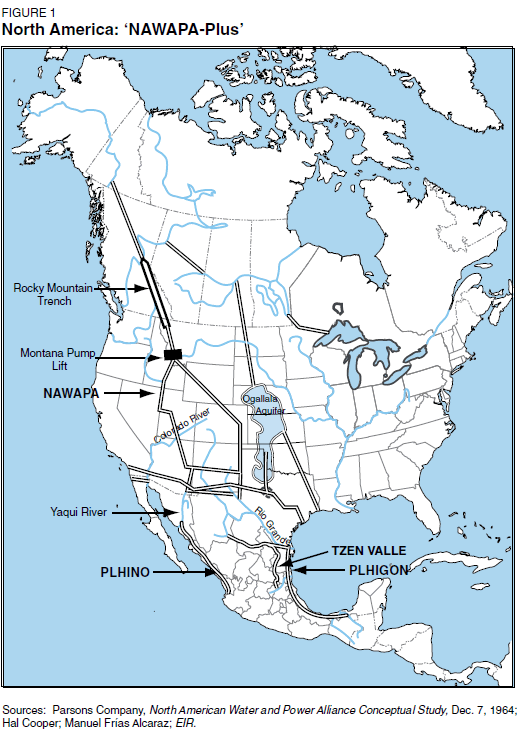 Sources: Parsons Company, North American Water and Power Alliance Conceptual Study, Dec. 7, 1964; Hal Cooper, Manuel Frías Alcaraz; EIR |