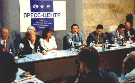 For the second time in one year, LaRouche travels to Moscow for a four-day visit December 10-14 to participate in a scientific conference honoring the memory of Pobisk Kuznetsov who died the previous year. In addition, LaRouche also addresses a seminar hosted by Academician Lvov at the Central Mathematical Economics Institute (CEMI) and met with the Mayor of Moscow, Yuri Luzhkov. The Kuznetsov memorial symposium is titled "Space & Time in the Evolution of the Global System Nature-Society-Man" at which LaRouche speaks on the subject of "Russia's Role in Solving the Global Crisis" [PDF] in which he states: