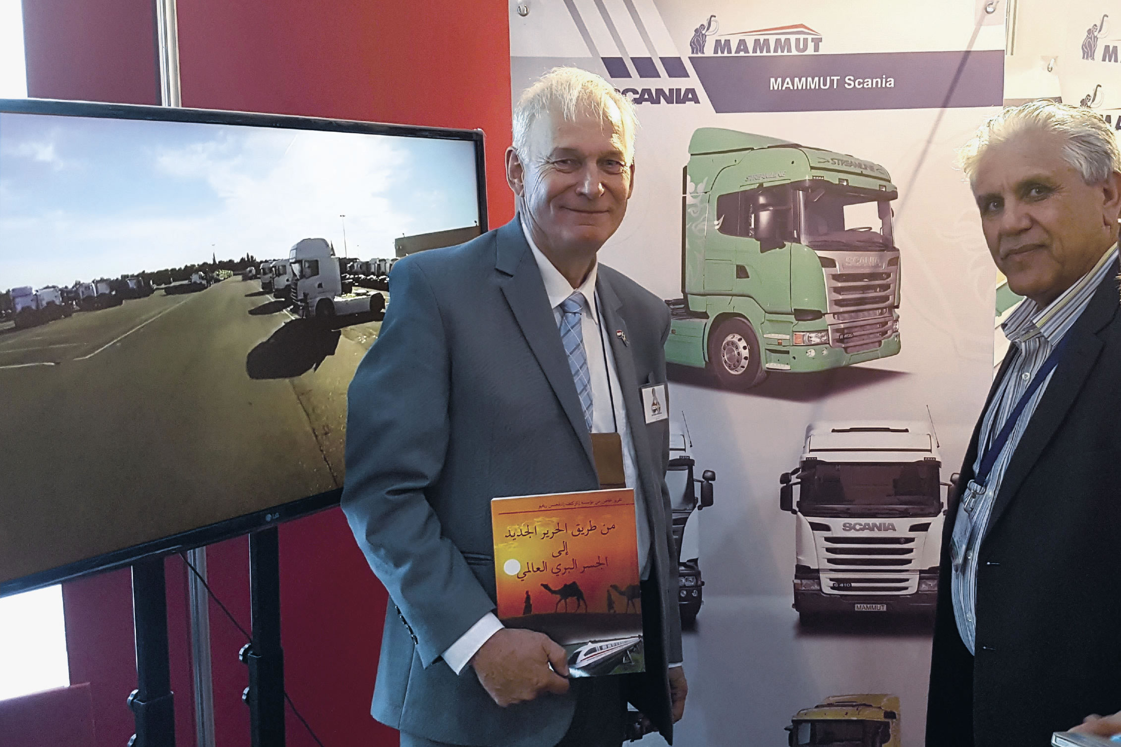 View full size![]() Scania Trucks and Buses was represented at the Damascus International Trade Fair through Iran. Here, the author (left) with Nidal Hana, head of the Hanagroup, which owns the Scania manufacturer in Iran. |