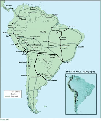The other proposed route is the Central Bioceanic Railway Corridor championed by the Bolivian government. This would run from the port of Santos, through Bolivia, into southern Peru, where it would terminate at the Pacific port of Ilo. Bolivia proposes that six of South America’s 12 nations would benefit, if the Brazil-