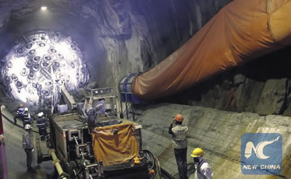 One of the tunnels of the Coca Codo Sinclair hydroelectric project in Napo province, Ecuador, being built by Sinohydro Corporation of China. It is the biggest hydroelectric power station on the Amazon River in Ecuador. |