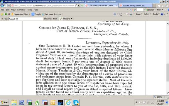 CONFEDERATE STATES OF AMERICA,Navy Department, Richmond, August 27, 1864.