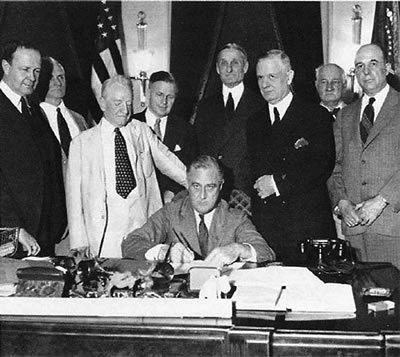 ![]() Franklin D. Roosevelt signs Glass-Steagall Act |
