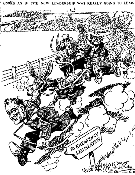 ![]() Kansas City Star/S.J. Ray President Roosevelt’s push for Glass-Steagall and other crucial legislation, during the first 100 days of his Presidency, brought the Constitution’s founding principles to bear to solve the emergency facing the nation.. |