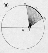 (b) Kepler measured these areas. The area swept out as the planet moves from P1 to P2 is the white area (P1-P2-A). That area is measure by the portion of the circle, P1-B-P2. minus the triangle P2-B-A. The area of that triangle is the distance BA times the height P2-N. But, the line P2-N, as Nicolaus of Cusa showed, is incommensurable with the arc P1-P2. Thus, the principle of non-uniform planetary motion is dependent on magnitudes which are not susceptible of precise calculation. This gave rise to the famous Kepler problem: If Kepler knew where the planet had been, he could calculate what portion of the orbit (time) had elapsed. But, owing to the transcendental relationship between the line and curve, he could not precisely calculate where the planet would be when an equal amount of time would have elapsed. Kepler called on future geometers to solve this problem, which provoked Leibniz to develop the calculus.