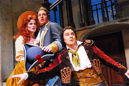 ![]() Photo/Anne M. Peterson The Virginia Opera’s production of “The Barber of Seville,” left to right: Manon Strauss Evrard is Rosina, John Zuckerman is Count Almaviva and Jason Detwiler is Figaro. |