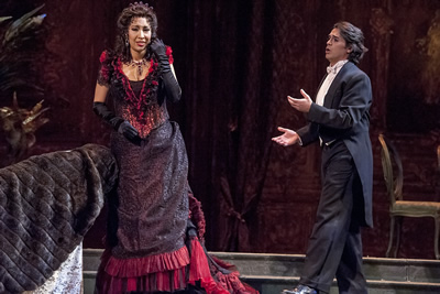 Verdi wrote that La Traviata was to be staged in the contemporary dress of the 1850s, although in Verdi's time, managers thought it way too risky, and it was not for decades that this was done. Verdi paints an accurate picture not only of the Parisian aristocracy of the day, but also a striking reflection the culture degradation of our own times. The story, based on the play "La Dame aux Camélias" by Alexandre Dumas-fils, was risky enough – a Parisian courtesan lives a luxurious, but completely empty life, and is sick with consumption, when true human emotions are awakened in her by Alfredo. They leave the degenerate Paris scene, they are transformed, her health improves, but their idyllic and promising future is ended when Alfredo's father, Germont, comes to Violetta, to insist in a "fatherly" way that she leave his son due to her past, in order to protect his family name. She complies, for love, and by the time Alfredo learns the truth of her situation, it is too late.