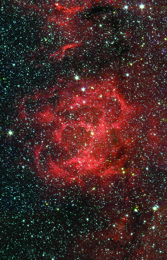 ![]() NASA The Trifid Nebula, as revealed in an infrared photograph from NASA’s Spitzer Space Telescope. The nebula is located 5,400 light years away in the constellation Sagittarius.. |