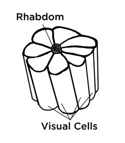 The cephalopods seem to share a relatively unique capability to respond to, and to reflect, patterns of polarized light. Cephalopods, with only one kind of squid as an exception, are colorblind, but their eyes serve them well, through an enhanced ability to selectively perceive linearly polarized light. The cephalopod eye has photoreceptors and corresponding hair-like microvilli which expand their surface area, and appear to be oriented orthogonally to adjacent ones, as seen in Figure 1b.