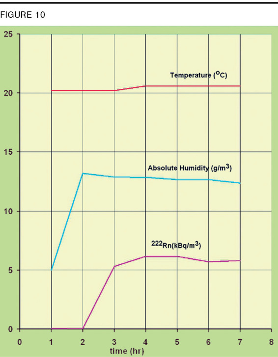 And they showed, that when you increased the ionization with radon, in this case, you get a slight, but clear decrease in humidity, so the water, instead of being dispersed as vapor throughout the chamber, starts to condense, and you get lower humidity measured. And they also measured a slight increase in temperature, which is associated, again, with this condensation process.