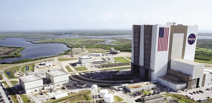 To bring about the creation of a new system of cooperation among nations, space science is key. Shown, Cape Canaveral’s Launch Complex 39. |
