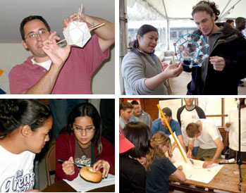 Pedagogical demonstrations by the LaRouche Youth Movement. Clockwise from left, cadre school presentations in Washington, D.C., California, California, and Boston, MA.