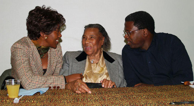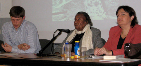Mrs. Robinson spent ten days in France, where her book Bridge Across Jordan was recently published in the French language. Here she is seen at a conference in Venissieux, with Colette Ilunga of the Café Noir Association, which co-organized an event for her, and Bertrand Buisson from the LaRouche Youth Movement. She was the guest of honor at the General Assembly of the LaRouche movements political party in France, Solidarité et Progres. |