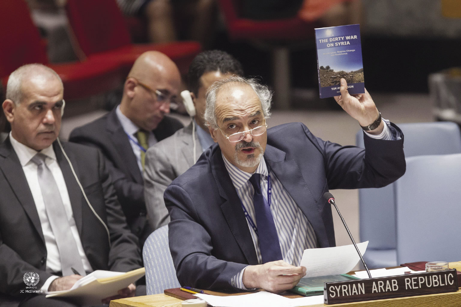 Dennis Speed: Our final speaker, to the surprise of many of you, is Ambassador Bashar Ja’afari, Permanent Representative of the Syrian Arab Republic to the United Nations. [applause]