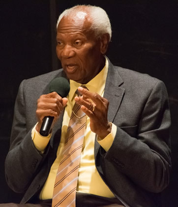 Estes: Yes. Just to be quite honest, yes. But, you know, my parents taught me at a young age to follow the philosophy of Jesus, Who was a man of love. And so, when I was in high school in Centerville, Iowanow keep in mind, I was born in 1938if I would come home, as an example I’ll give you, I would tell my mother that a white boy called me the “n-word” or he hit me; my mother said, “Well, now, son, you get down on your knees and you pray for that boy.” But when you’re seven or eight years of age, you think there’s something wrong with your mother’s mind! [laughter] And so you say, “Mother, but wait a minute, he called me the n-word, and he hit me.” My mother said, “You get down on your knees, and you pray for that boy.”