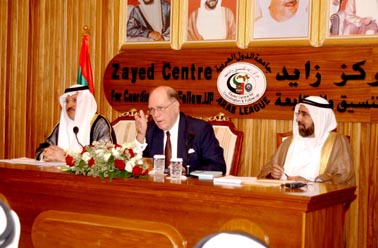 On June 2-3, 2002, a conference sponsored by the prestigious Zayed Centre in Abu Dhabi, capital of the United Arab Emirates, featured Lyndon H. LaRouche, Jr. giving the keynote speech. The two day, inviation-only conference, entitled, "The Follow Up on the The Role of Oil and Gas in World Politics" was attended by Ministers of the UAE government, numerous diplomatic representatives, intellectuals, and press. Delegates attended from Saudi Arabia, Kuwait, Qatar, and from many other Gulf and Arab states. Other speeches on the first day were given by Arab Oil Ministers and experts from the Gulf region. Mr. LaRouche's speech, presented here, was entitled The Middle East As A Strategic Crossroad , and was received with great enthusiasm. It was followed by a lively question and answer session. This was the first visit Mr. LaRouche, to the Middle East region since 1975, and it marked an important intervention point into the ongoing discussion in the Arab oil producing countries regarding life and death strategic issues. Mr. LaRouche was accompanied by his wife Helga, the chairwoman and founder of the Schiller Institute. Click here for her speech, and for related articles. The Middle East As A Strategic Crossroad The world has come to a crossroads in modern history. If the world were to continue along the pathway currently chosen by my government and some others, civilization will be plunged, for as long as a generation or more, into a global dark age comparable to that which struck Europe about seven-hundred-fifty years ago. We must not pretend that danger does not exist; but, also, we must commit ourselves to the hopeful alternative which wise governments will prefer. Therefore, I shall speak frankly, but also optimistically, of a second crossroads: the Middle East.