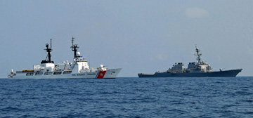 ![]() U.S Coast Guard/Petty Officer 2nd Class Lauren Jorgensen A U.S. coast Guard cutter and Navy guided-missile destroyer cross the Black Sea on August 26, to deliver relief supplies to Georgia. Such provocative actions raise the likelihood of incidents with the Russian Navy that could escalate to World War III. |