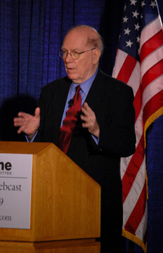 ![]() EIRNS/Stuart Lewis Lyndon LaRouche addressed Washington diplomats on July 1. |