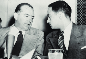 Library of Congress After World War II, LaRouche’s generation and the one that came after it were subjected to right-wing terror, orchestrated by, among others, these affectionate buddies (left to right): J. Edgar Hoover; Sen. Joseph McCarthy and his attorney Roy Cohn; and Cardinal Francis Spellman. |