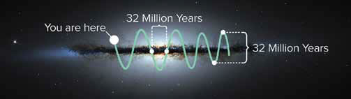 But to really increase the scarce water supplies available to mankind, we must make use of events in the galaxy and the Solar System in order to produce more water. Here you see (Figure 8) a representation of the 32 million-year periods in which our Solar System undergoes a cyclical motion, moving above and below the plane of the Milky Way. This has an enormous effect on the cosmic radiation, which leads to cloud formation, and which causes all precipitation by ionization of the moisture in the atmosphere. The conquest of space will also be enormously important in the future, for the conquest of problems on Earth.