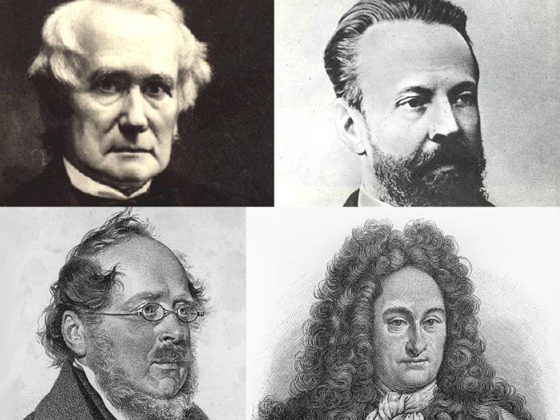 Clockwise, from top left: Henry C. Carey, Count Sergei Witte, Gottfried Wilhelm Leibniz, Friedrich List.
