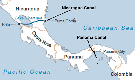 Nicaragua and Panama Canals Map