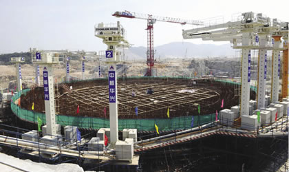 Construction of units 5 and 6 of the Fuqing nuclear power plant in April 2015, which will serve as demonstration units for China’s new Hualong One reactor design. China National Nuclear Corporation’s new reactor design sets the groundwork for China to export its nuclear technology. |