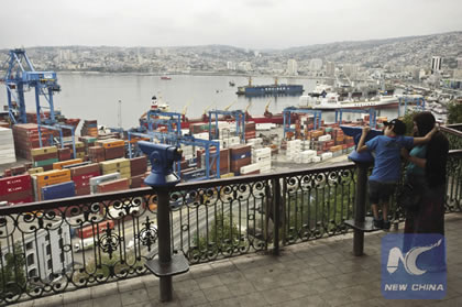 China’s One Belt, One Road Initiative has been key in diversifying bilateral trade. Shown, container shipping in the port of Valparaiso, Chile. |