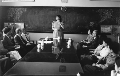 Schiller Institute Helga LaRouche in Beijing in 1996, calls for a Eurasian Development Bank and “an emergency meeting of the principal nation-state powers for the purpose of establishing a new international monetary system.” |