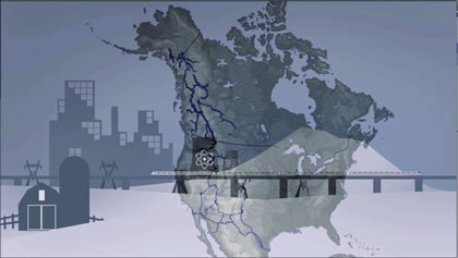 Rather than the term “infrastructure,” LaRouche has introduced the term “platform,” to describe an “upshift” of the Biosphere, produced by the application of the discovery of a universal physical princple. NAWAPA, as conceived by LaRouche and his scientific Basement team, represents such a platform. This image is taken from the LPAC-TV video, “NAWAPA, Water for Life” (http://larouchepac.com/node/15570). |