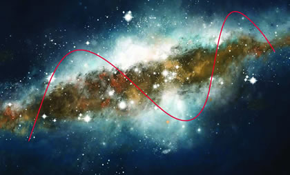 The natural evolution of the conditions of life on Earth, is, in significant part, determined by qualitative shifts in the Solar system’s relationship to our Galaxy. Shown: Our Solar system oscillates above and below the plane of the Milky Way, in a 60-million-year cycle. |