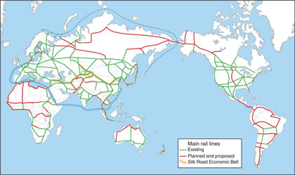 - The corridor from China to Central and Western Asia, intended to be extended through Iraq, Syria, Turkey, and into Europe and Africa;