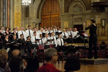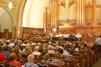 Diane Sare conducts the peformance of four African-American spirituals in St. Bartholomew's Episcopal Church on Park Avenue at 51st Street in Manhattan, September 10, 2016. |