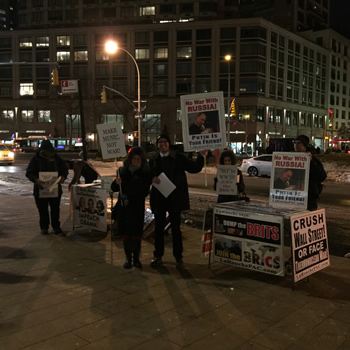 "We are protesting against those who openly support the worst people in the Ukrainian government, installed by Mrs. Nuland and Barack Obama. This is destructive, this is provoking Russia to war. What we all need to do is unite and work in a positive direction. And what is Obama doing instead of that? Now he's going to arm Ukraine. It's absurd!" says activist Daniel Burke.