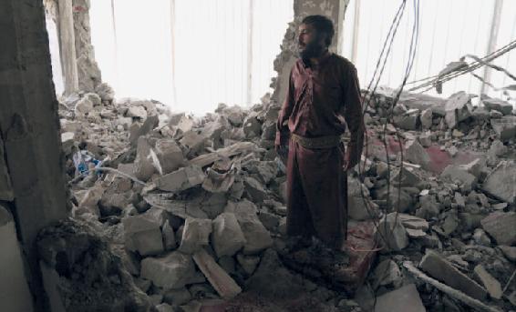 Abdallah Mohamed Al Qady stands in what had been the entrance of his family home in Bayt Mayad neighbourhood of Sana’a, Yemen. The four-storey house was completely destroyed when a missile landed next door on June 13, 2015. |
